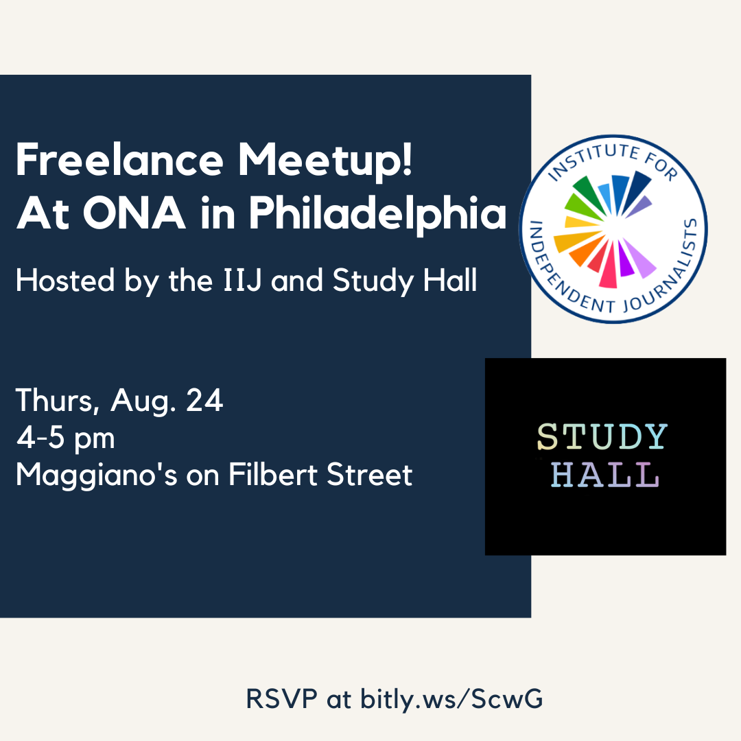 This Thursday, August 24, to kick off the 2023 Online News Association Conference, Study Hall is co-hosting a freelancer networking event with the Institute for Independent Journalists at Maggiano’s Little Italy from 4 – 5 PM. Please RSVP here.